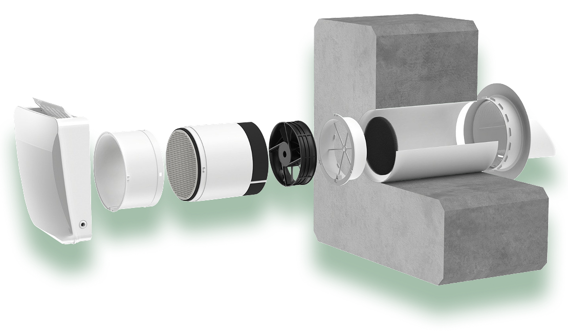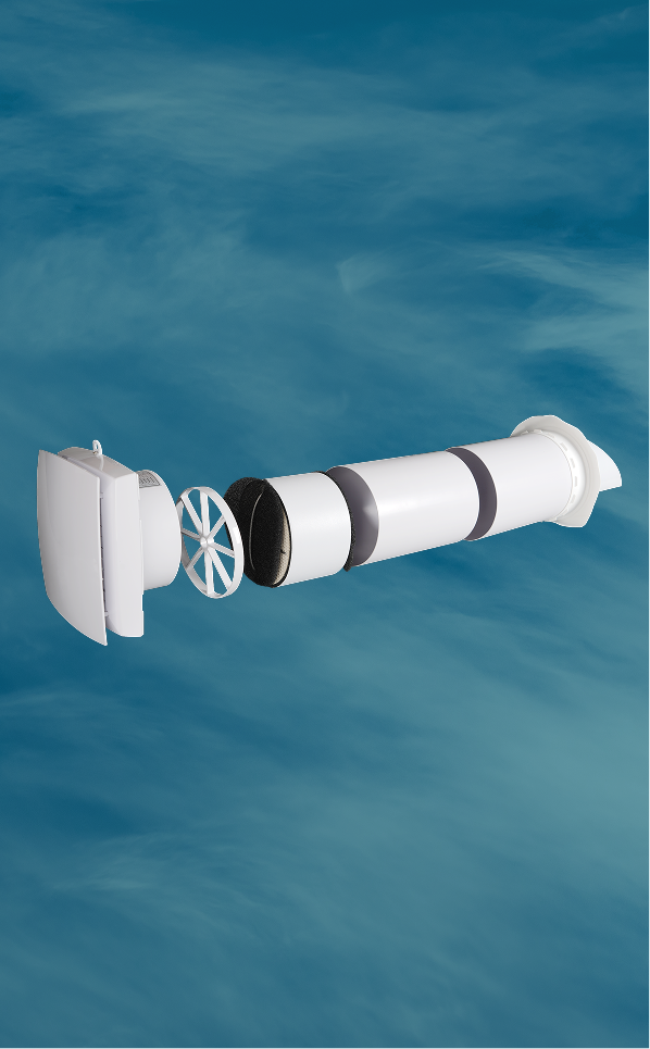 Dvocevni sistem Lotus 4 omogoča stalno dvosmerno izmenjavo zraka: ena cev dovaja svež zrak, druga odvaja izrabljenega. Izmenjevalnik toplote zadrži toploto in jo vrne v prostor. Deluje 24/7, čisti zrak in ohranja optimalno mikroklimo.