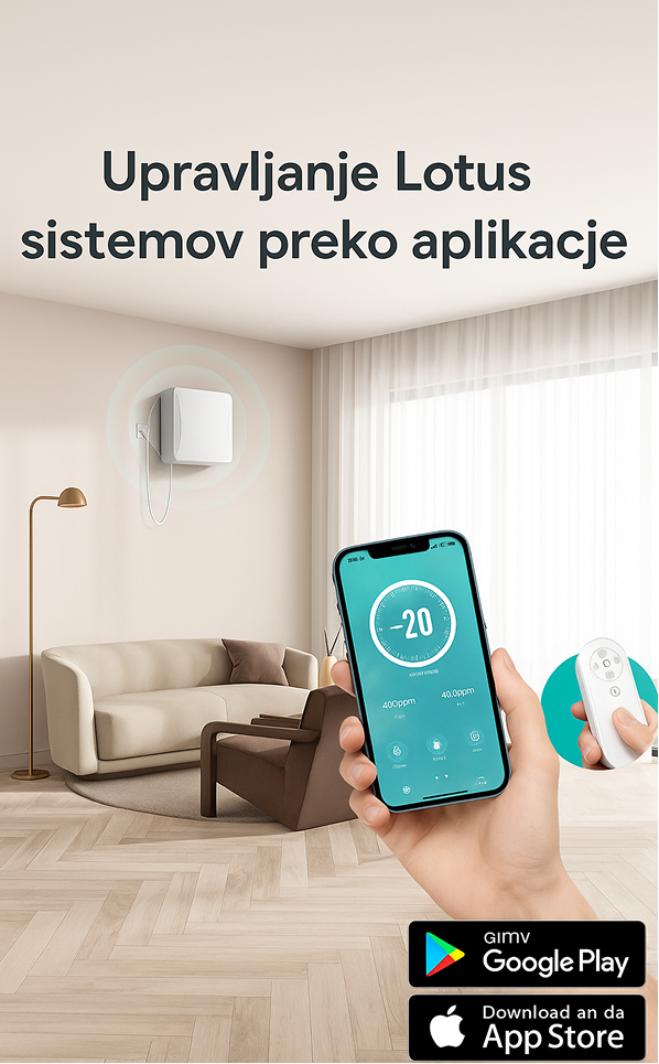 | Lotus 4 | Dvocevni | do 110 m3/h | H12 + F7 | CO2/vlaga/VOC | do 45 dB (A) |